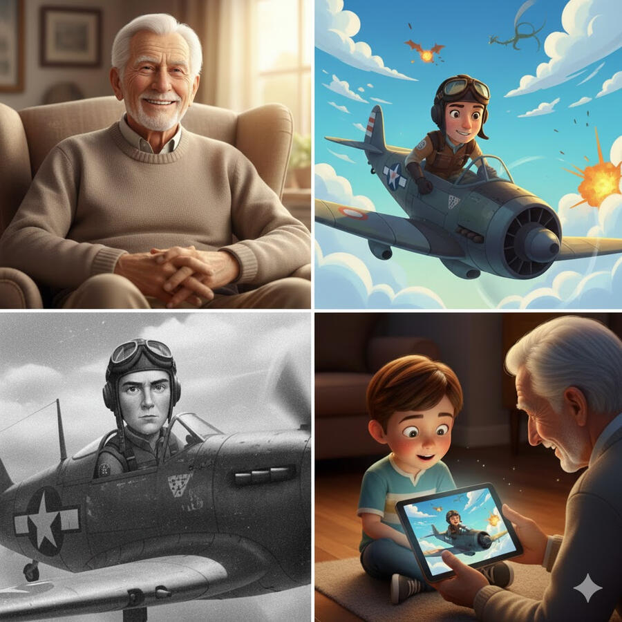 Piece together memories from the past with help from AI. Share those stories with the people you love. Or create stories of fiction inspired by them - be it for bedtime or publication